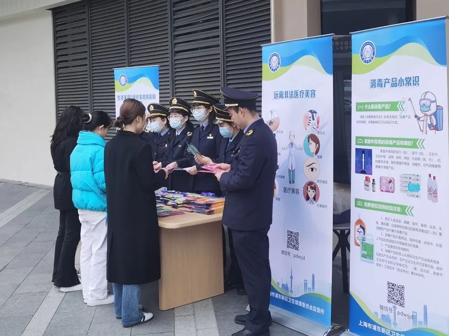 本次活动以“规范医美市场 保障消费者健康权益”为主题,紧紧围绕与广大市民息息相关的热点问题展开。宣传展板重点展示时下热点的医疗美容、非法行医、消毒产品等卫生知识,同时通过分发宣传折页、开展问卷调查、一对一咨询等多种形式,向市民讲解医疗美容相关卫生法律法规要求、生活美容与医疗美容的区别,提醒市民勿在生活美容场所接受医疗美容服务,捍卫和保护好自身的健康权益。同时,各执法中队在街镇开展消费者权益保护宣传活动。