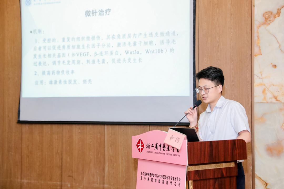 同时中医美容分会为青年人才成长创造机会,7月12日下午召开青年医师交流专场。本次交流由浙江省中医院罗宏宾、杭州市富阳区中医院贺倩倩、杭州市中医院余涛、金华市第五医院兰燕琴及浙江省中医院姬程五位医师做经验交流,内容依次为:如何提高痤疮患者治疗满意度和依从性、浅析黄褐斑的治疗心得、时方联合微针低能量光治疗脱发的应用体会、强脉冲光不良反应的预防及脱发门诊中常见问题—不同头皮、头发类型洗护产品的选择。青年论坛内容贴合临床,从常见病、临床心得及患者教育等处着手,现场讨论热烈。会议安排了优秀学术论文交流,充分展现目前中医美容专业的理论及临床研究进展。