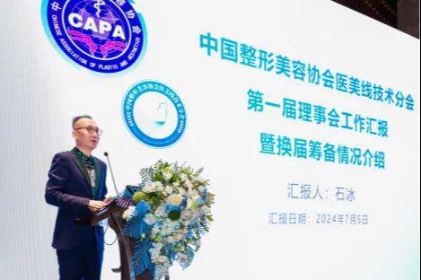 2024 年 7 月 5 日,中国整形美容协会医美线技术分会换届大会于武汉光谷会展中心盛大举行。总会副秘书长兼办公室主任靖宣、副秘书长兼培训部主任李国兴、办公室副主任黄超,以及第一届理事会会长石冰教授等全体候选人皆出席了此次会议。