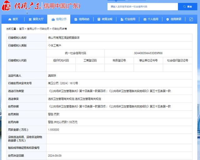 金融界消息,近日,佛山市南海区湄姿颜美容店因违反卫生管理有关规定,被佛山市南海区卫生健康局警告,并处以罚款 1.55 万元。