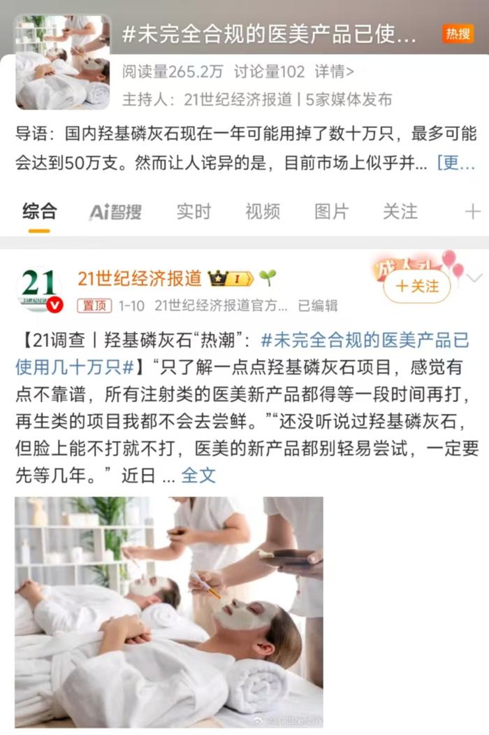 此前,据媒体披露,羟基磷灰石在尚无完全合规的医美产品前,却已使用几十万只,市场乱象可见一斑。基于此现象,深圳、北京等地于2025年1月启动专项检查,严查医美材料超适应症使用;中国整形美容协会也呼吁建立“注射材料白名单”。