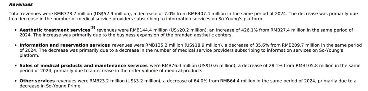 医美产品及维养服务销售收入为7600万元,较2024年同期的1.058亿元下降28.1%,主要因医美产品订单量减少。